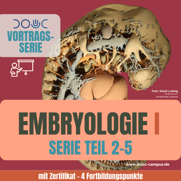 Diese Vortragsserie ist dem Thema Embryologie gewidmet. Sie beginnt mit der Konzeption an Tag 1, um in den daraufolgenden Vorträgen aufeinander aufgebaut alle weiteren Themen der Entwicklungsvorgänge in der Embryonalzeit bis zum Ende der 8. Woche zu beleuchten. Das Konzept des deutschen Embryologen Prof. Erich Blechschmidt, das dem osteopathischen Verständnis so nahe ist, bietet die Basis für die Inhalte, die in den Vorträgen dieser Reihe gut verständlich und didaktisch aufgearbeitet wiedergegeben werden.